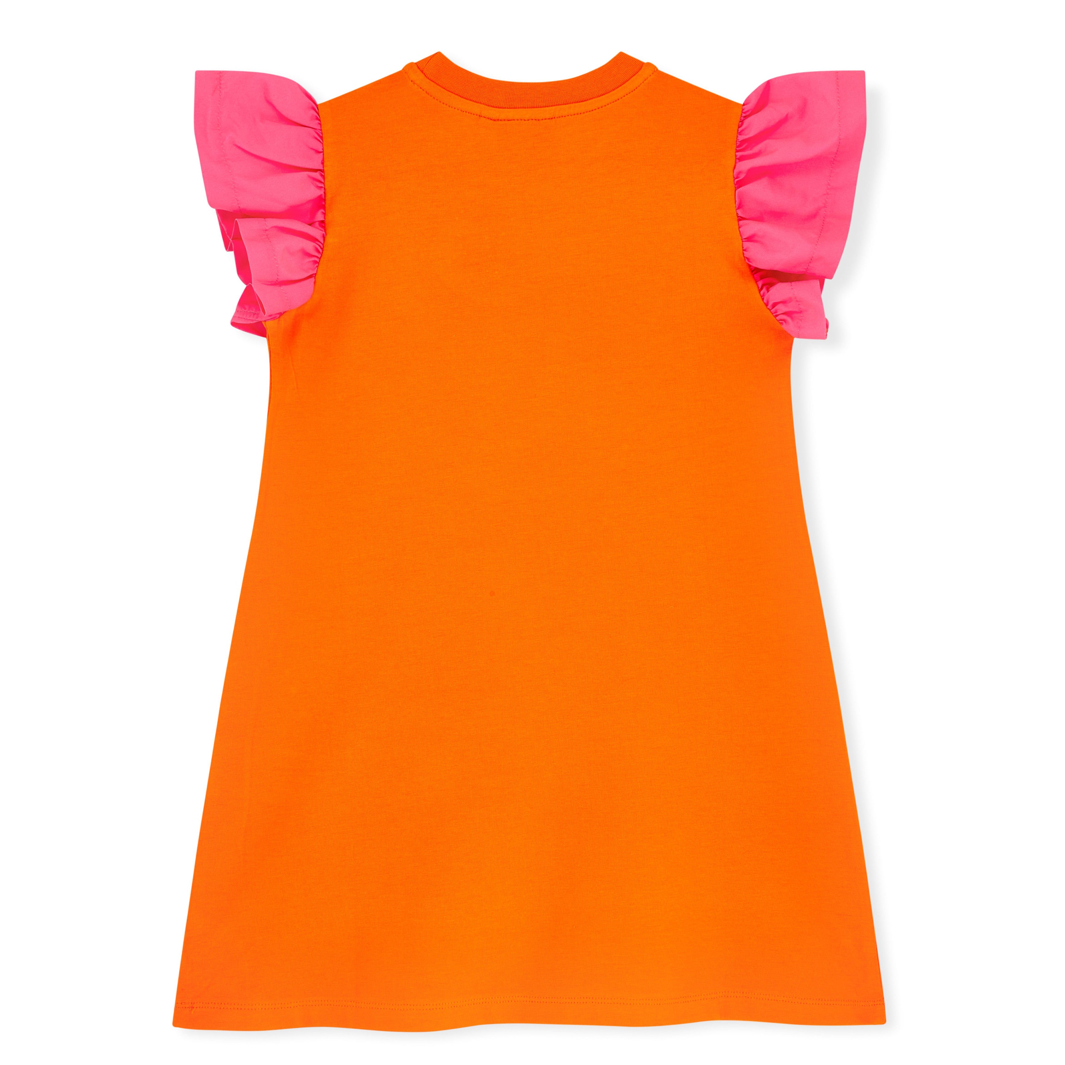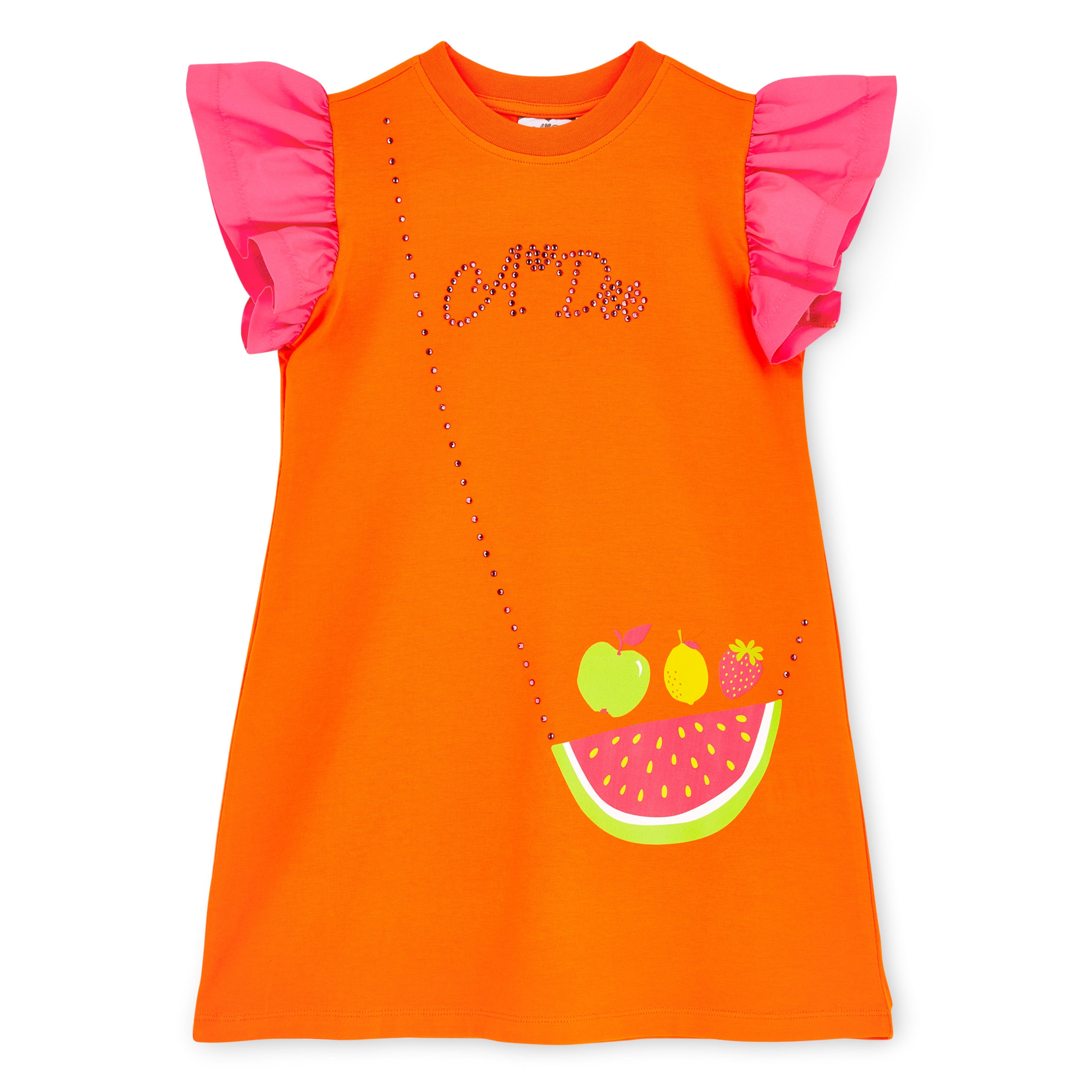 The Tegan dress is made from soft cotton featuring contrast frilly sleeves and a handbag artwork on the front.